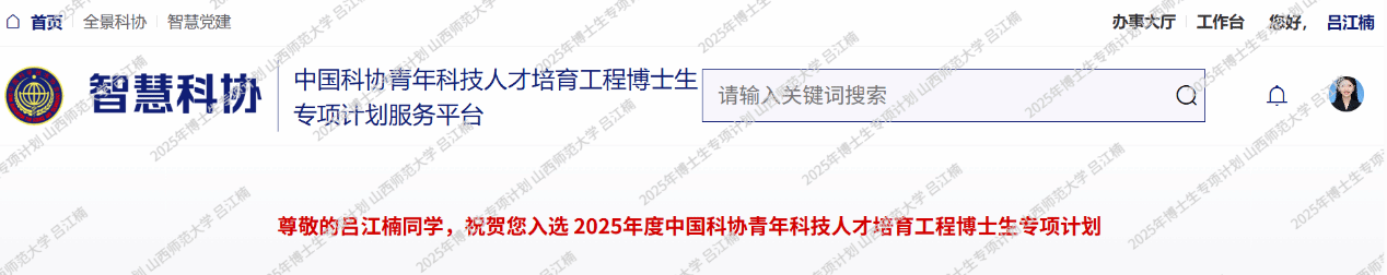 喜报!我院博士生吕江楠入选2025年度中国科协青年科技人才培育工程博士生专项计划